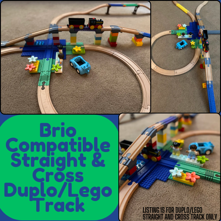 Take your wooden train adventures to the next level with these Brio-compatible tracks that have Duplo and LEGO bases attached! Build elevated tracks, bridges, or custom layouts by integrating your train set with building bricks for endless creativity.
