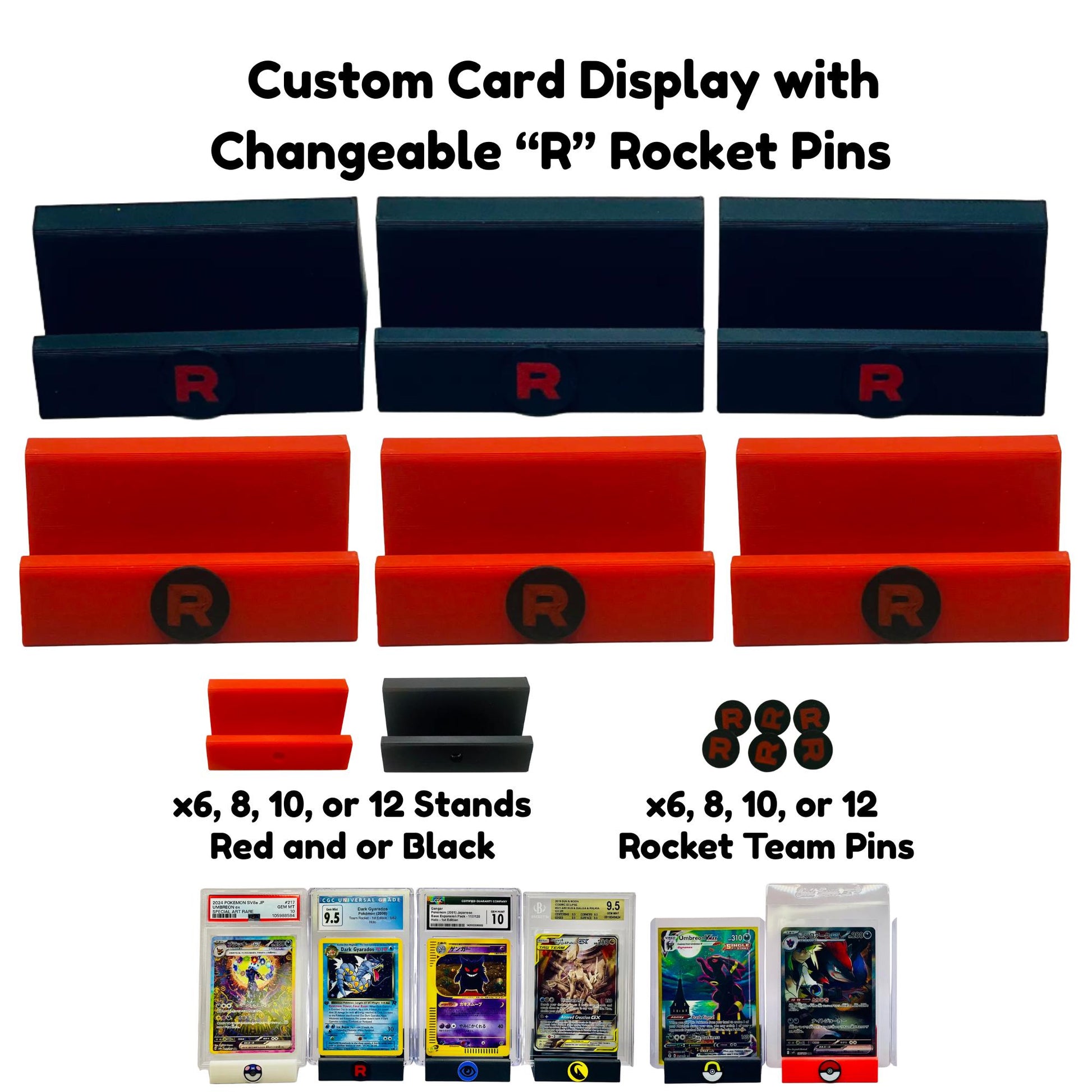 Each stand includes a swappable front peg for inserting themed dial pins — and this set comes with the iconic red Rocket Team "R" pins. Whether you’re showcasing prized pulls, anime-inspired collectibles, or sports hits, this modular display stand is sturdy, stylish, and built to match your collection.