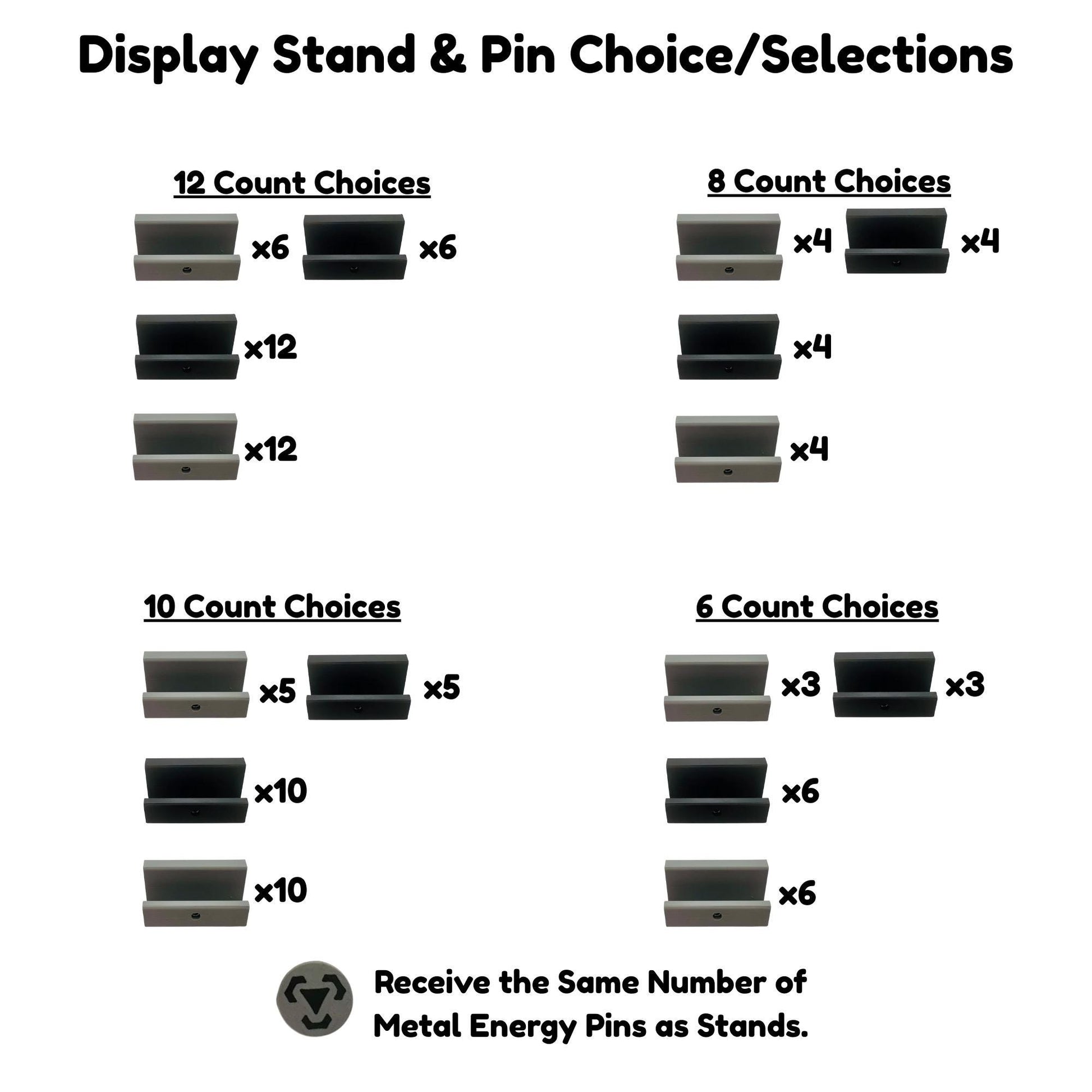 Each stand includes a swappable front peg for inserting themed dial pins — this listing features our Metal Energy pins, perfect for collectors who want to bring heat to their display. Whether you’re showcasing your favorite pulls, graded grails, this modular stand is stylish, sturdy, and made to match any setup.